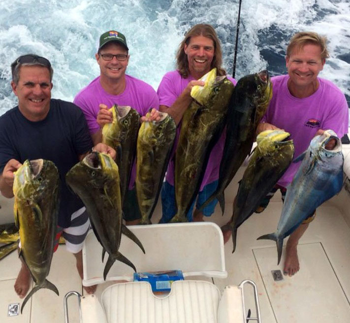 The Dorado bite is nothing less than incredible; Lots of fish in the 25-30 lb range and hitting just about anything on the Pacific side. Please remember to only keep what you need and release the rest. There are good numbers of Wahoo mixed in there as well.