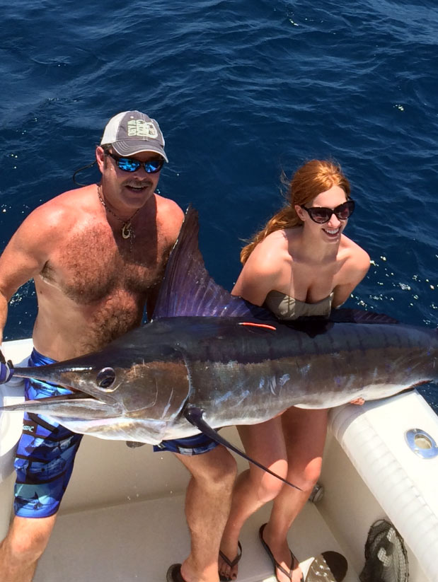 We are seeing 4-6 shots per day on Striped Marlin. They are hitting lures and live bait, as well as trolled dead Ballyhoo. We’ve caught Stripeys up to 200 lbs, monsters by Striped Marlin standards!